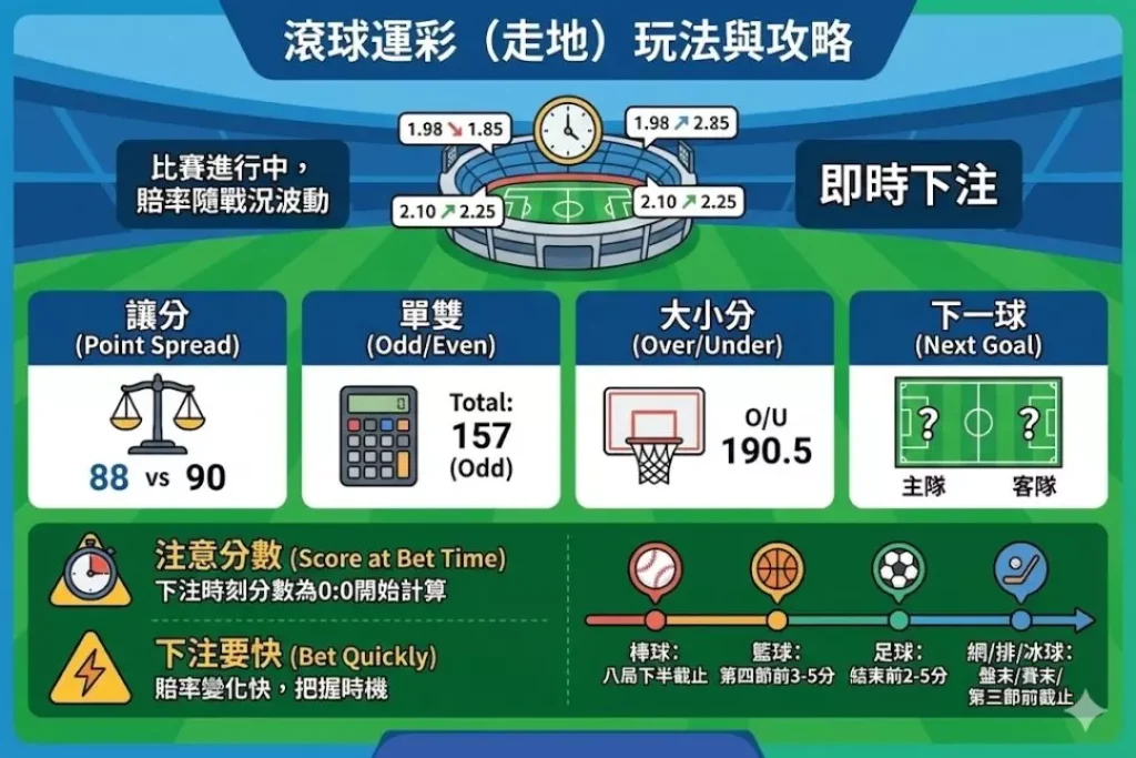 - 籃球滾球最晚下注時間:第四節結束前3~5分鐘截止投注